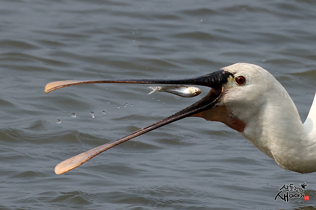 경상남도 창녕군에 있는 우포늪을 탐조하던 중 만난 노랑부리저어새의 물고기 사냥하는 장면을 연사로 담았습니다.