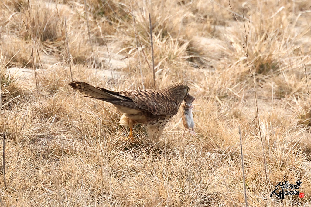 전라북도 김제시 진봉면에 있는 새만금 유역을 탐조하던 중 만난 천연기념물이자 맹금인 황조롱이 쥐 사냥장면입니다.