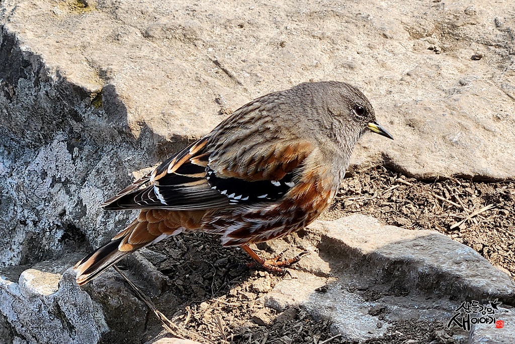 대구광역시 달성군 유가읍에 있는 비슬산의 정상인 천왕봉(1,083m)을 도보로 탐조하던 중 만난 바위종다리입니다.
