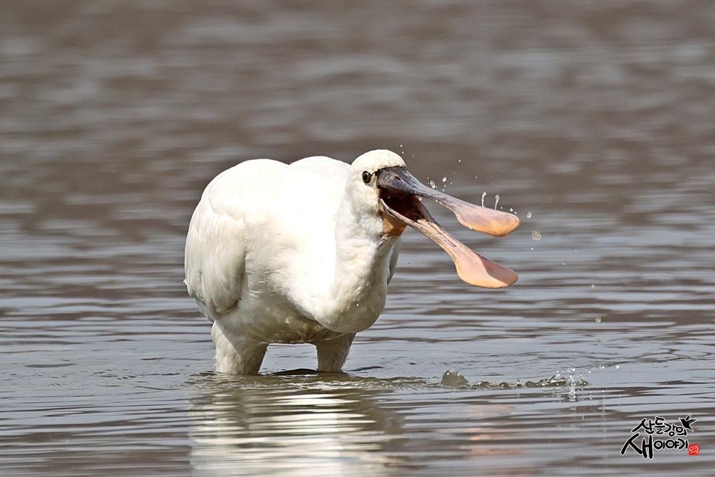 경상남도 창녕군 유어면에 있는 우포늪을 탐조하던 중 만난 노랑부리저어새의 먹이활동 장면입니다.