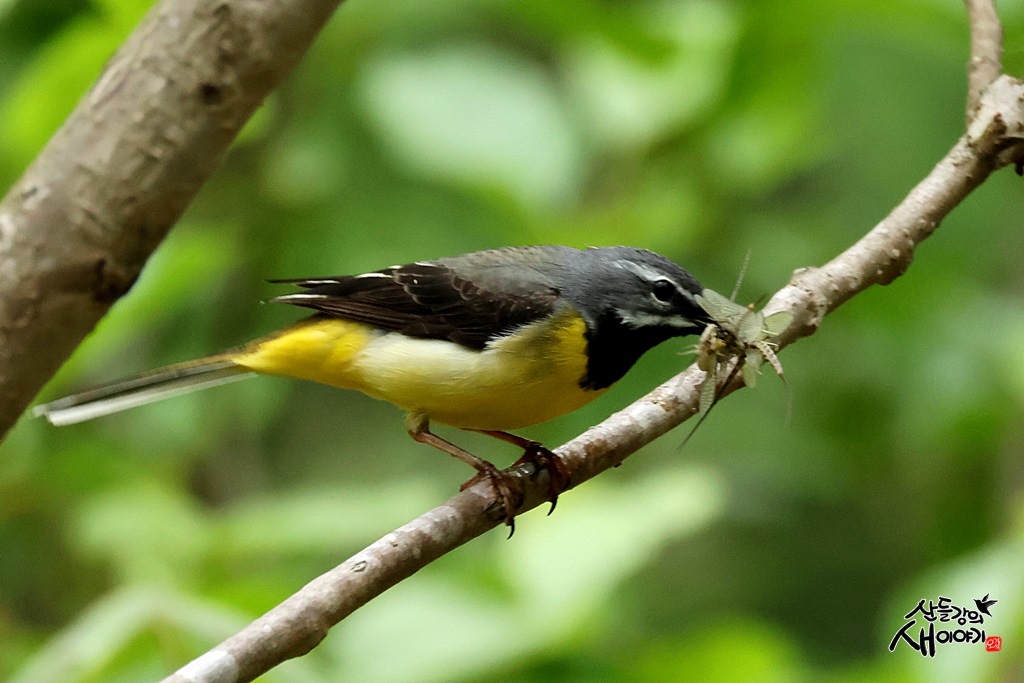 경상북도 성주군 수륜면의 작은 하천에서 만난 노랑할미새입니다. 먹이를 왕창 물고 온 것이 육추 중인 것 같네요.