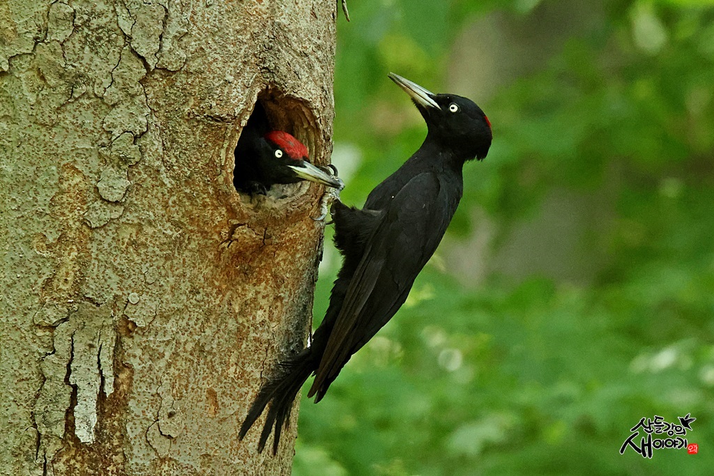 까막딱다구리는 딱다구리목 딱다구리과에 속하며, 크기가 45cm입니다. 천연기념물과 멸종위기종으로 지정보호합니다.