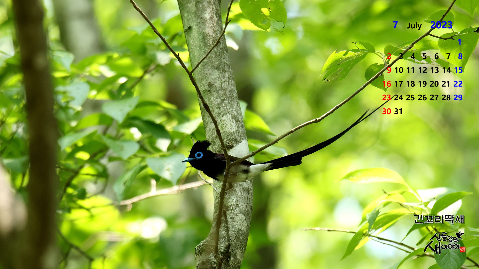 2023년 6월중 촬영한 새사진으로 만든 2023년 7월, PC바탕화면 달력(1920*1080)을 소개합니다.