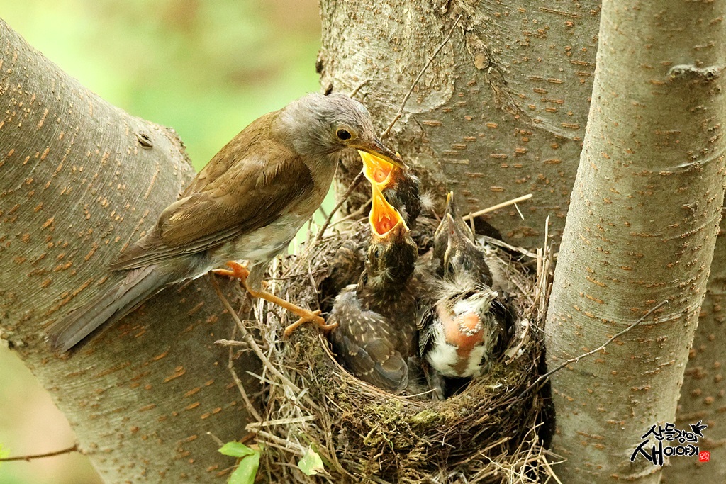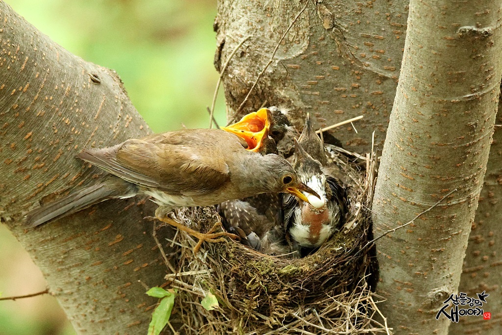 경상북도 성주군에서 탐조하던 중 만난 흰배지빠귀 육추장면입니다. 얼마전 유조 4마리는 무사히 이소를 마쳤습니다.