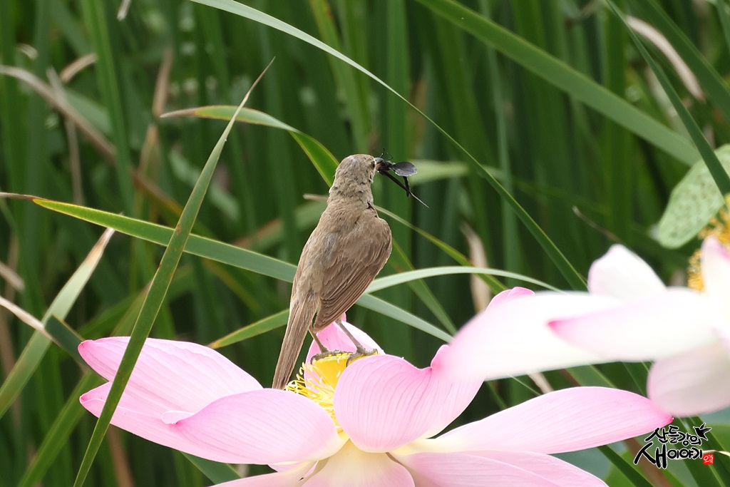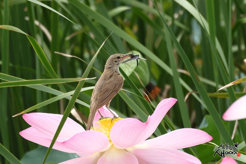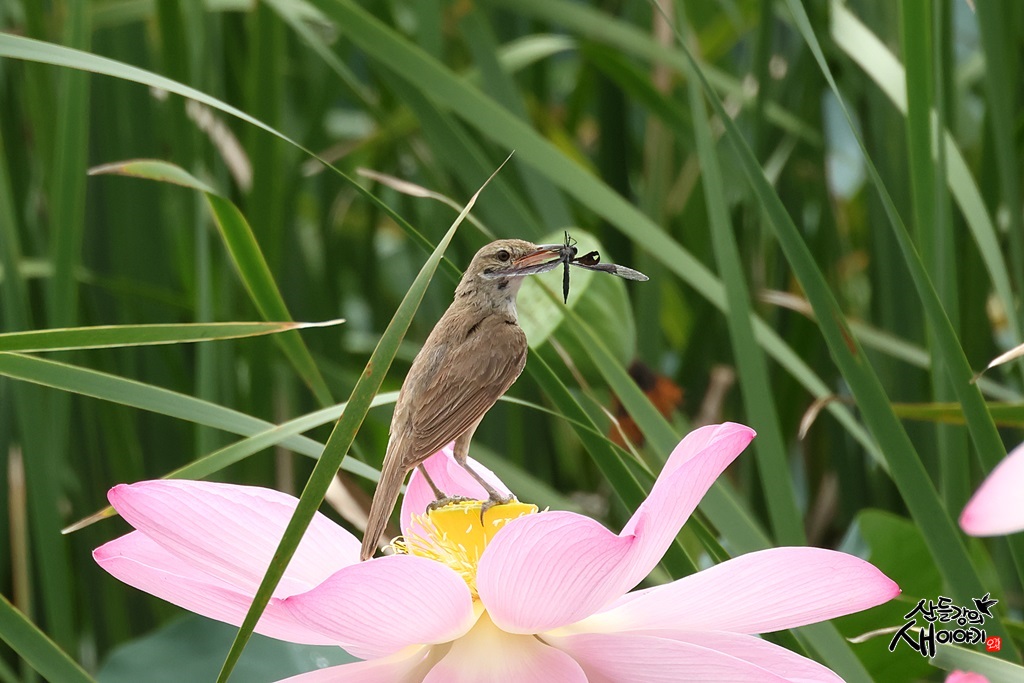 경상북도 경산시에 있는 저수지를 탐조하던 중 만난 개개비입니다. 나비잠자리를 사냥한 것을 보니 육추중인가 봅니다.