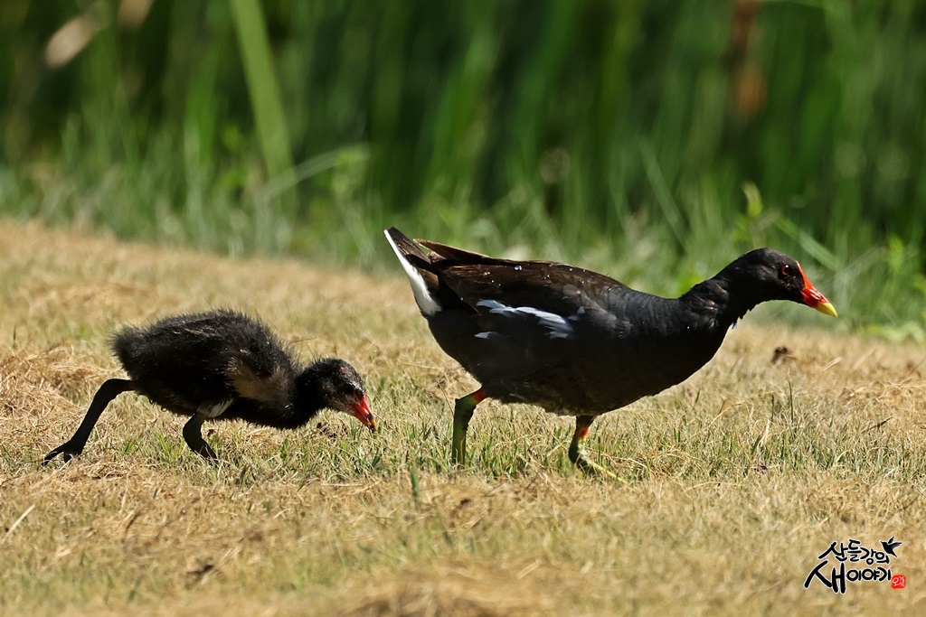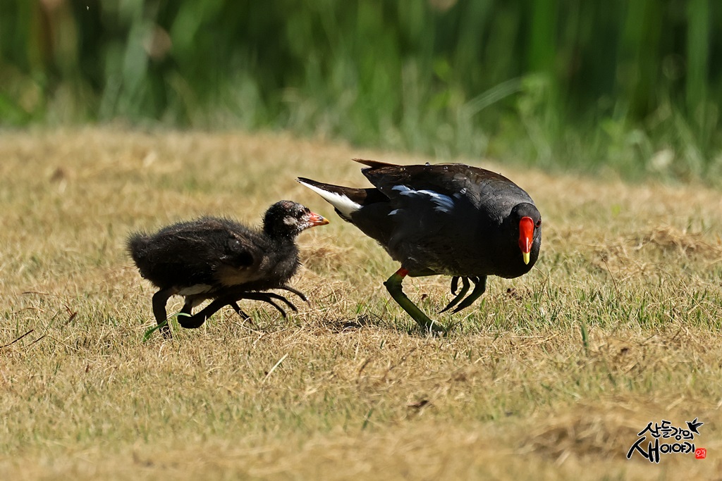 경상남도 창녕군 유어면에 있는 우포늪을 탐조하던 중 만난 쇠물닭 육추장면입니다. 엄마를 유조가 따라 다닙니다.