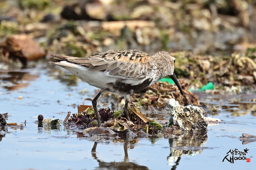 경상북도 포항시에 위치한 동해안 바닷가를 탐조하던 중 만난 민물도요입니다. 주요특징은 배쪽의 검은색 반점입니다.