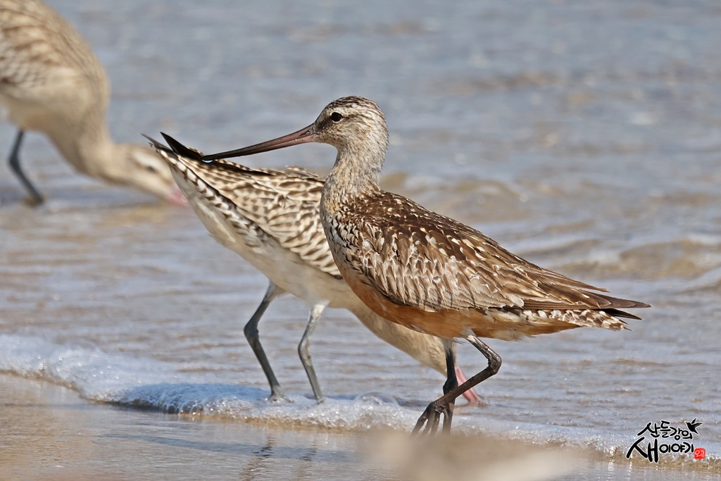 경상북도 포항시에 있는 동해안 바닷가를 탐조하던 중 만난 큰뒷부리도요입니다. 관찰된 개체수는 5마리입니다.