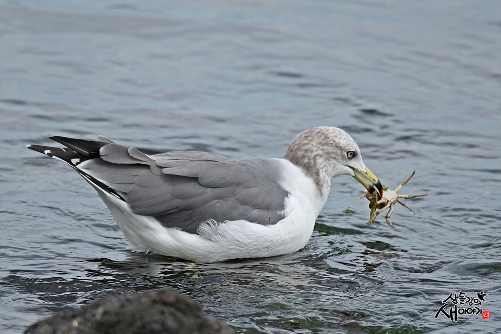 제주특별자치도 제주시 구좌읍 주변의 제주도 해안가를 탐조하던 중 만난 게 사냥하던 괭이갈매기입니다.