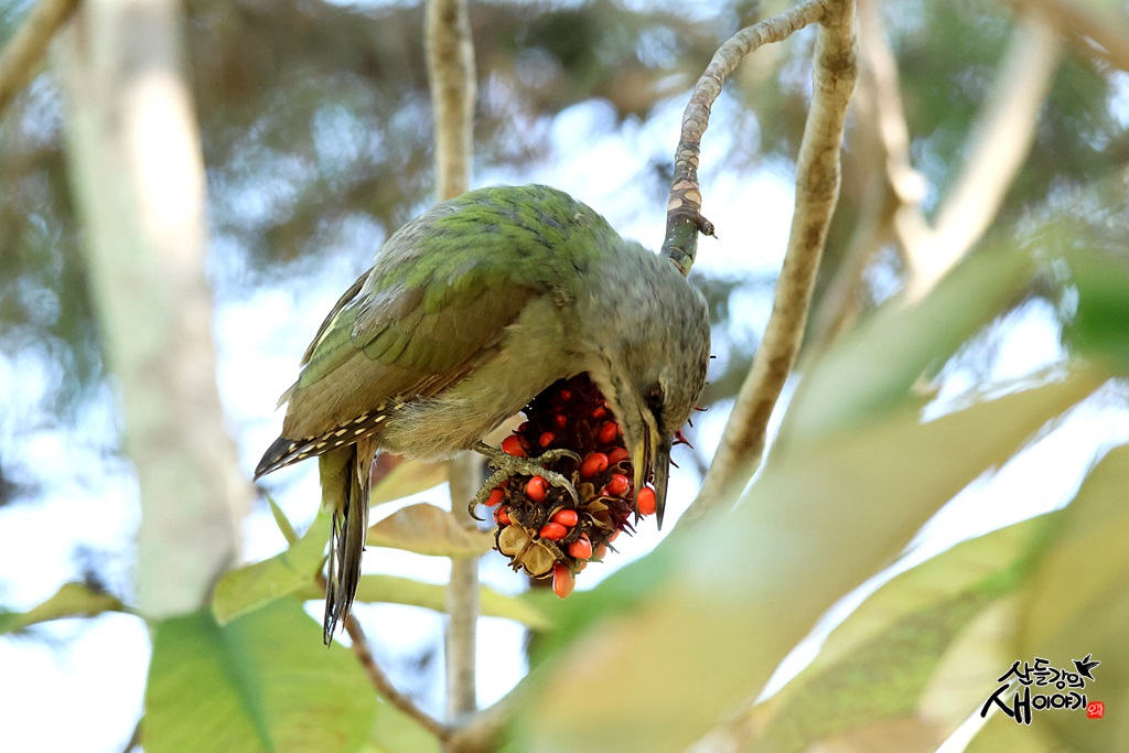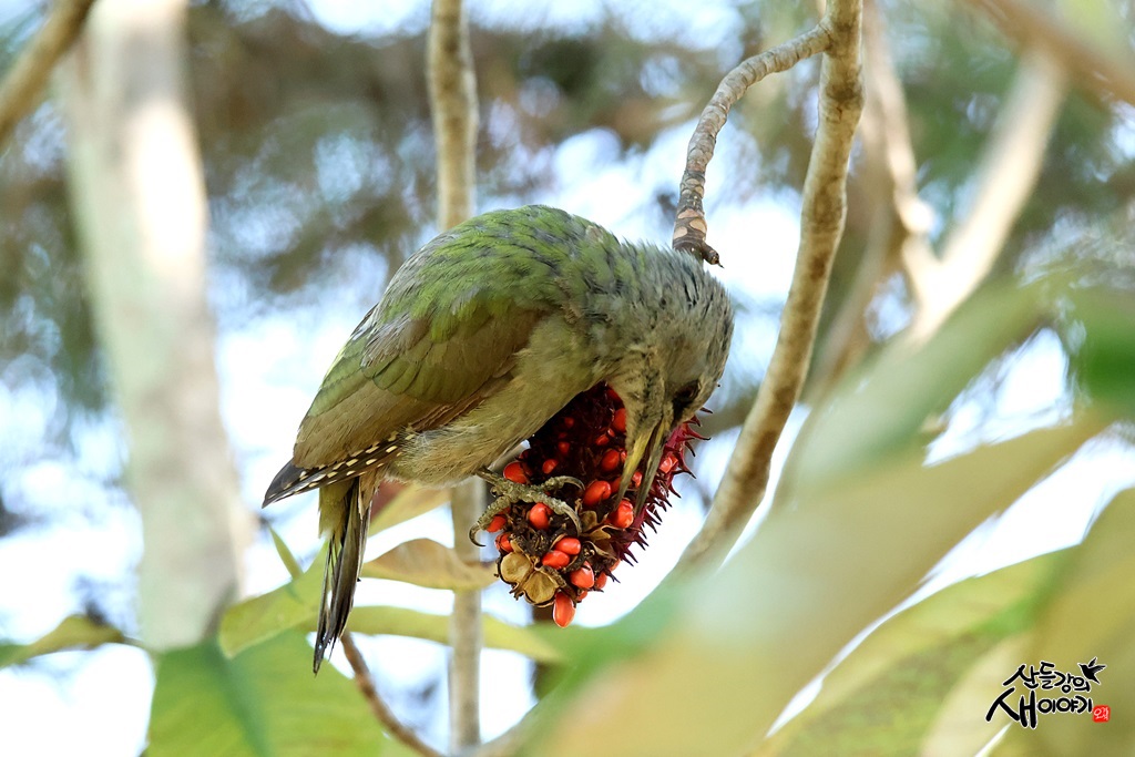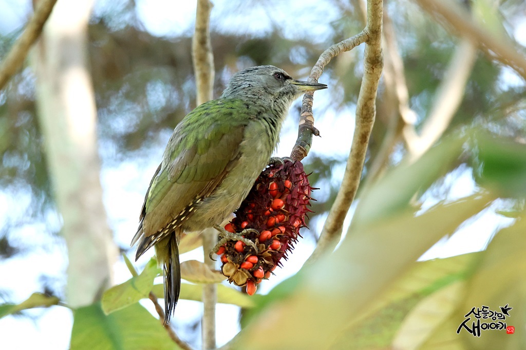 대구광역시 달서구 대곡동에 있는 대구수목원을 탐조하던 중 만난 청딱다구리입니다. 일본 목련의 빨간 열매를 먹네요.