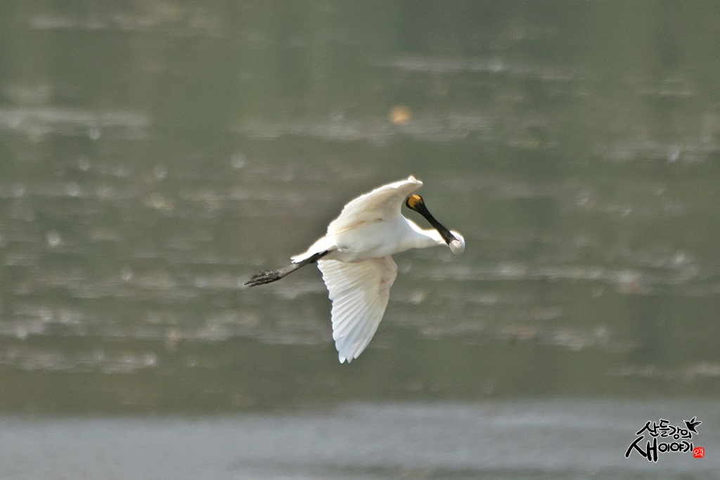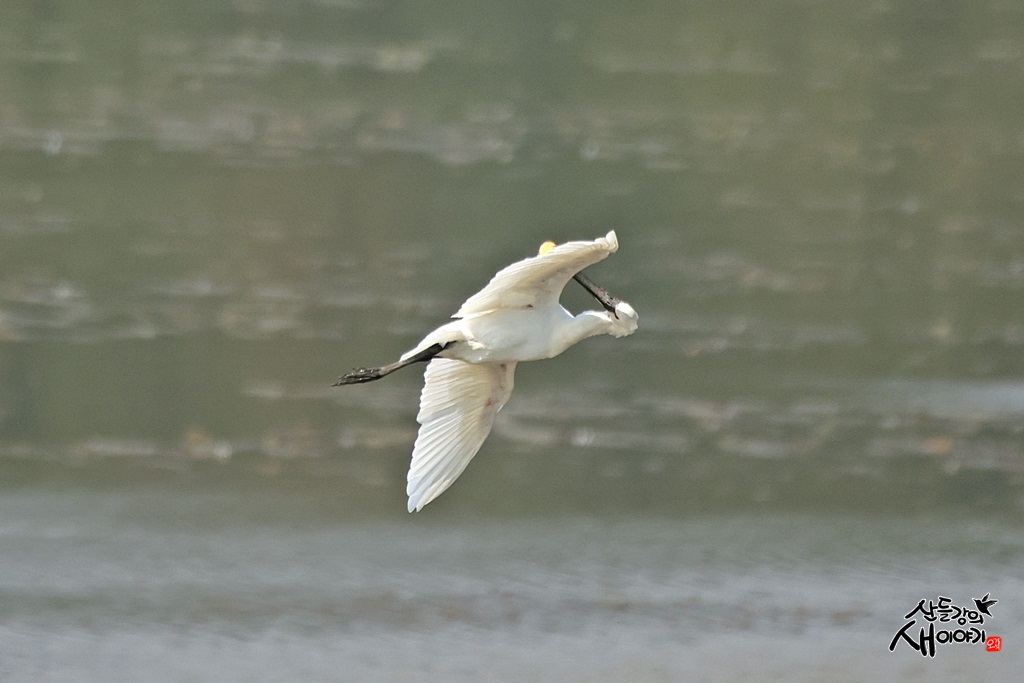 경상남도 창녕군에 있는 우포늪을 탐조하던 중 만난 노랑부리저어새입니다. 비행중에 몸단장을 하는데 잘 날아가네요.