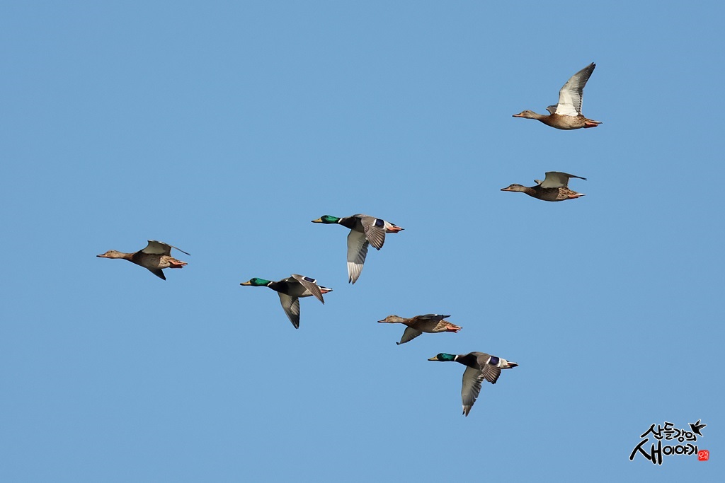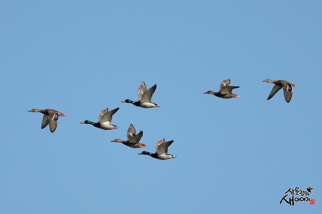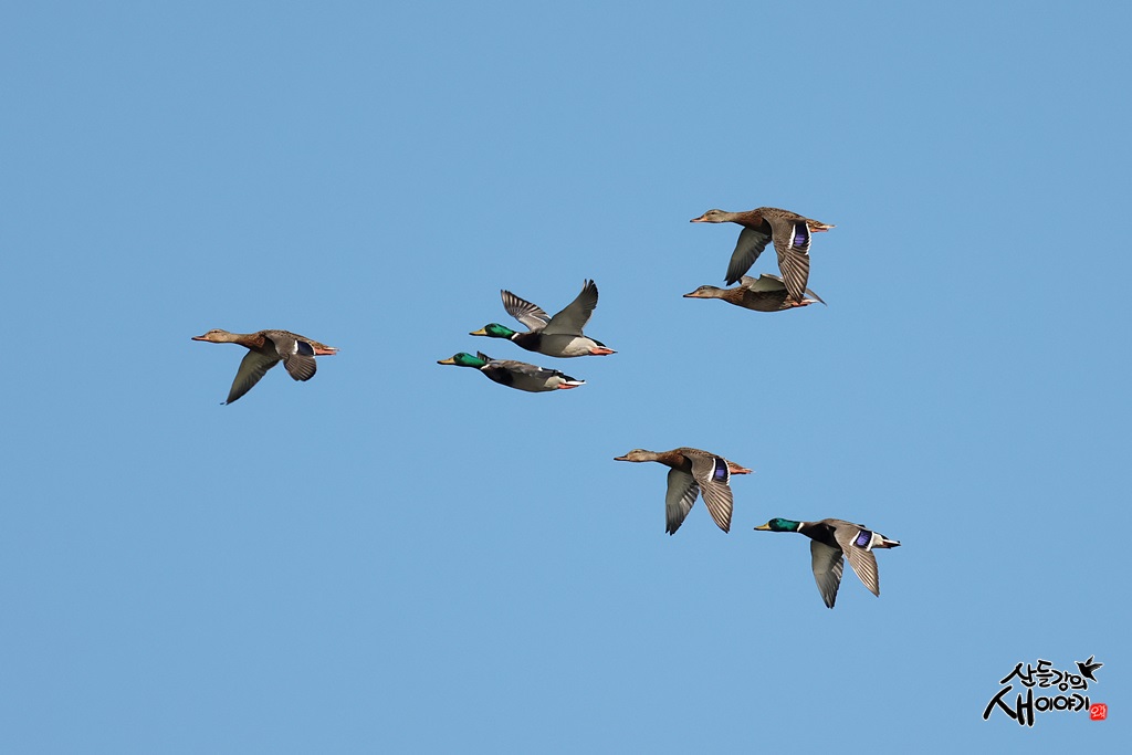 경상북도 포항시를 지나가는 형산강에서 물수리 사냥장면을 기다리던 중 청둥오리가 비행하는 모습을 담았습니다.