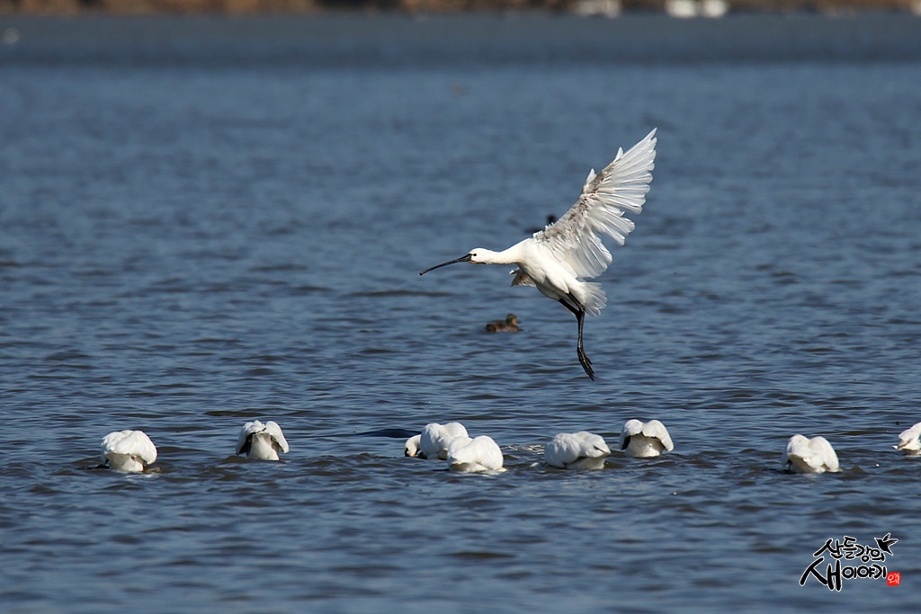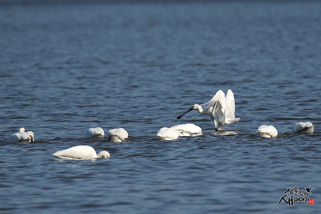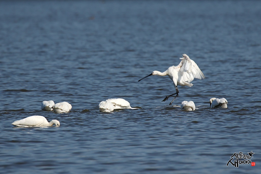 경상남도 창녕군에 있는 우포늪을 탐조하던 중 만난 노랑부리저어새 먹이활동입니다. 약 100여마리가 관찰되었습니다.