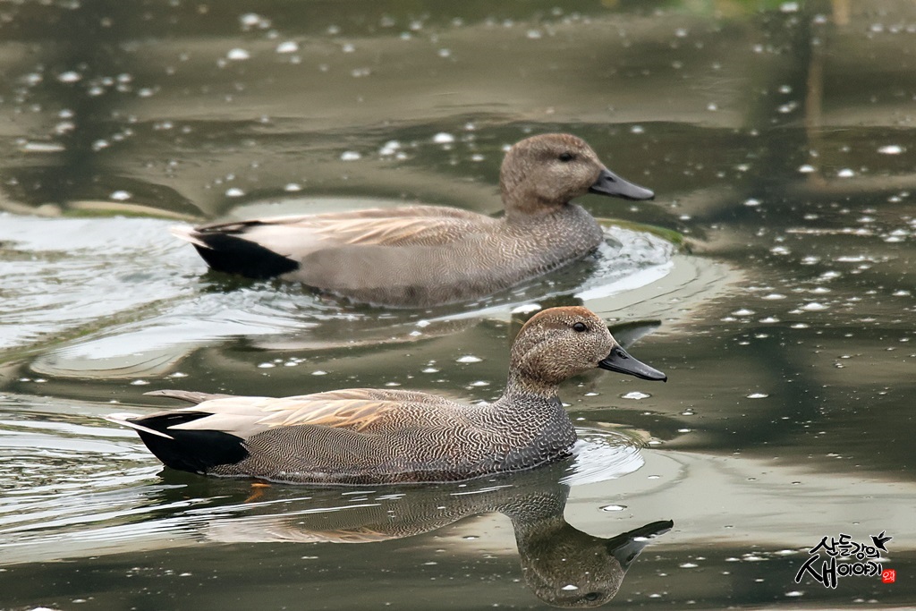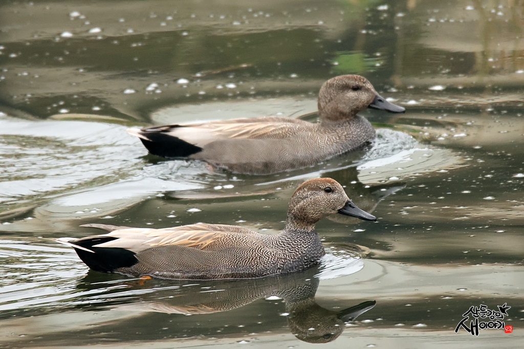 대구광역시 달성군과 달서구 사이를 흐르는 진천천을 탐조하던 중 만난 알락오리 수컷입니다. 쇠오리도 관찰됩니다.