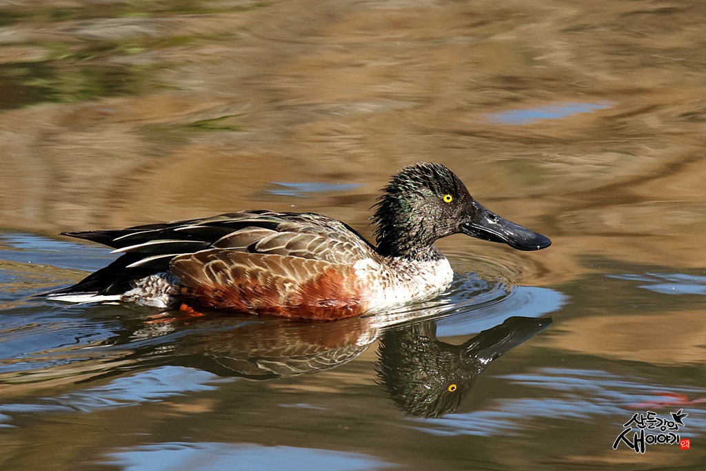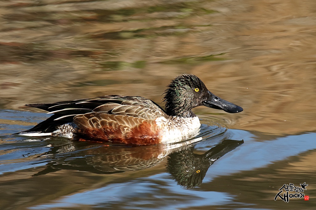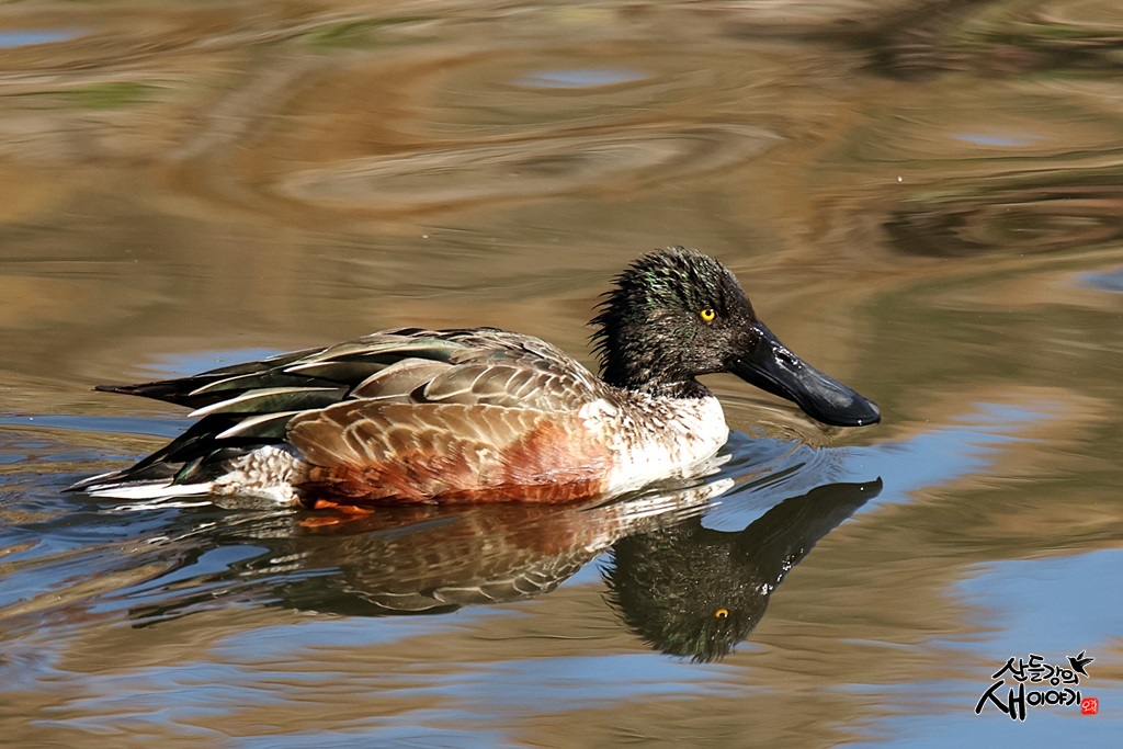 대구광역시 달성군의 도심하천 진천천을 탐조하던 중 만난 넓적부리입니다. 관찰된 개체수는 수컷 1마리입니다.