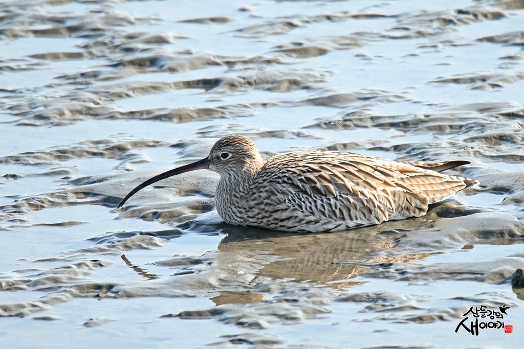 부산광역시 강서구 명지동에 있는 명지철새도래지 주변을 탐조하던 중 만난 알락꼬리마도요입니다. 휴식 중이네요.