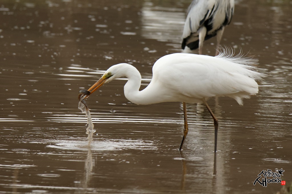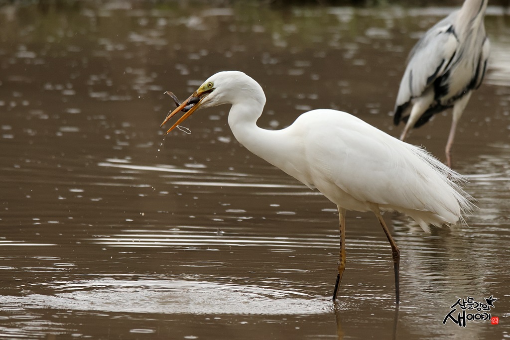 경상남도 창녕군에 있는 우포늪을 탐조하던 중 만난 대백로입니다. 무논에서 미꾸라지를 사냥했습니다.