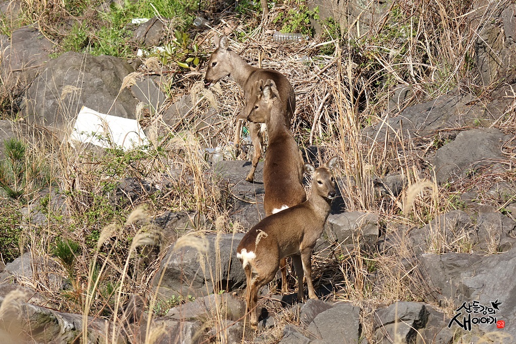 제주특별자치도 제주시 한림읍에 있는 올레 14코스를 걷던 중 만난 노루입니다. 엉덩이에 있는 흰반점이 특징이며, 수컷은 뿔이 있습니다.