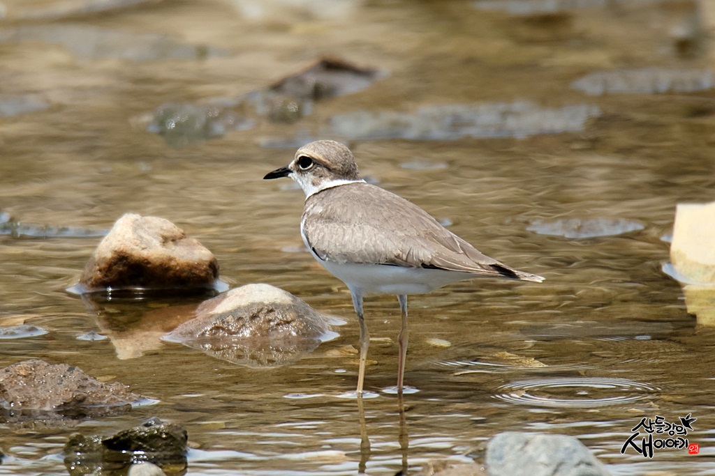경상북도 포항시에 있는 동해안 바닷가로 유입되는 작은 하천에서 만난 흰목물떼새입니다.