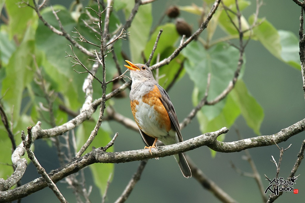 경상북도 성주군에 있는 밭을 정리하던 중 오동나무에서 노래부르는 되지빠귀를 만났습니다.