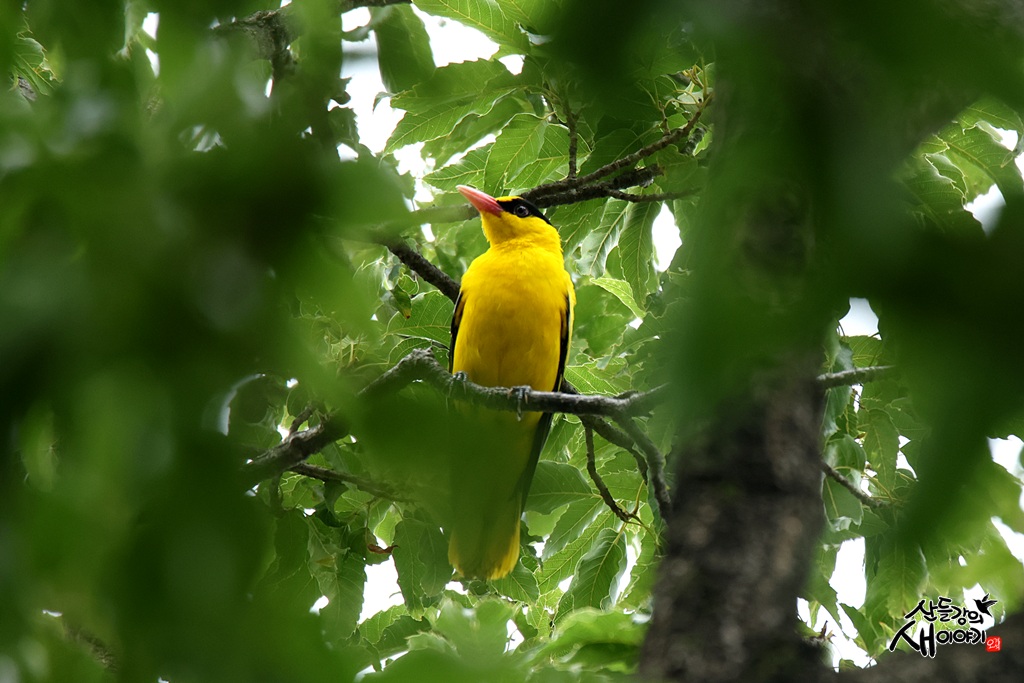 경상북도 경주시 황성동에 있는 황성공원을 탐조하던 중 만난 여름철새인 꾀꼬리입니다.