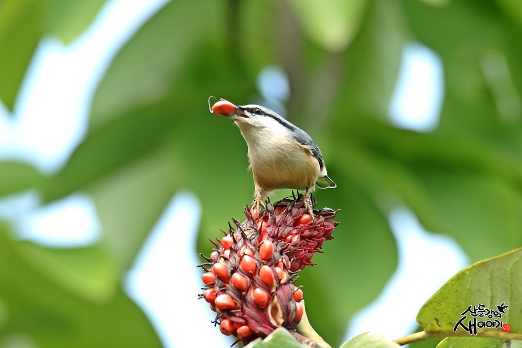 대구광역시 달서구 대곡동에 있는 대구수목원을 탐조하던 중 일본목련나무의 빨간열매를 먹는 동고비를 만났습니다.