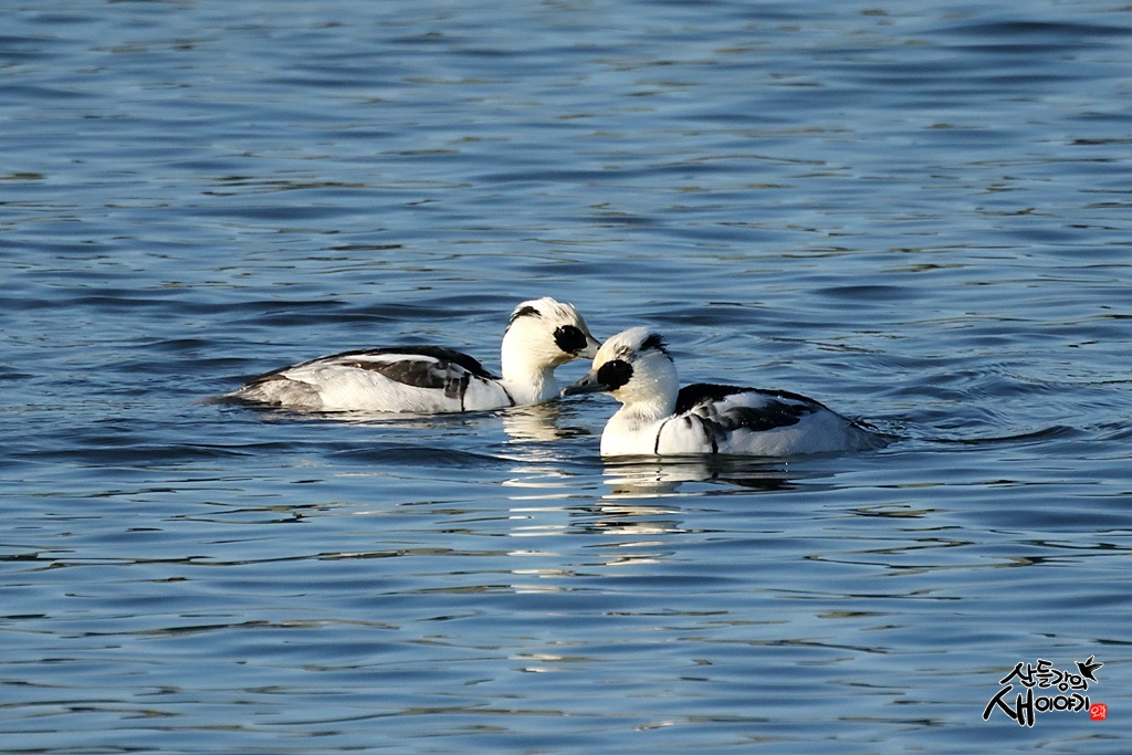 강원특별자치도 강릉시에 있는 경포호를 탐조하던 중 흰비오리 수컷과 암컷을 만났습니다.