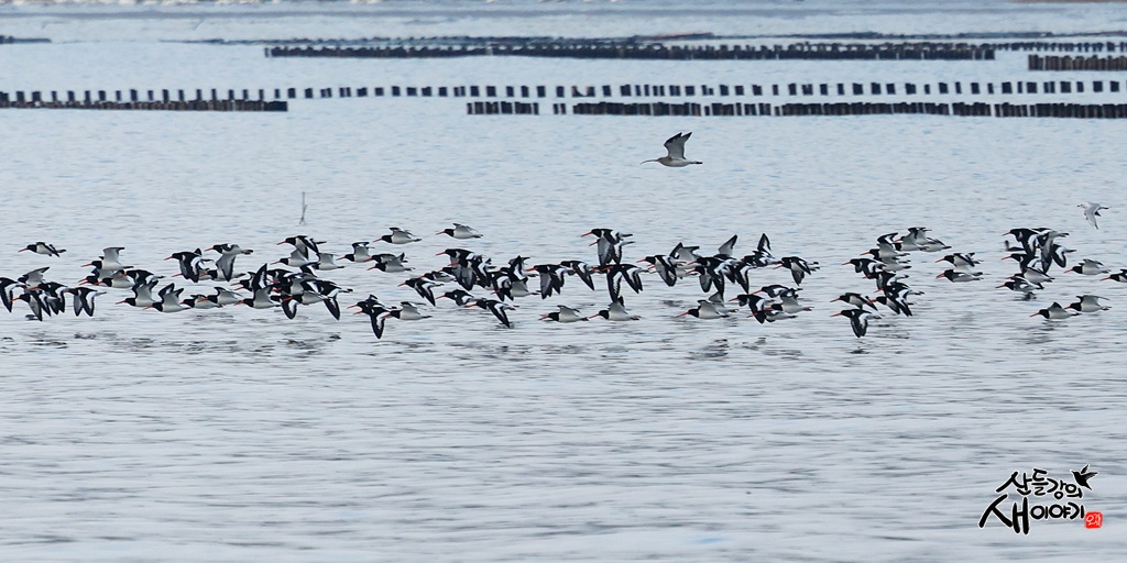충청남도 서천군에 있는 서해안 바닷가를 탐조하던 중 멸종위기종 검은머리물떼새 무리를 관찰하였습니다.