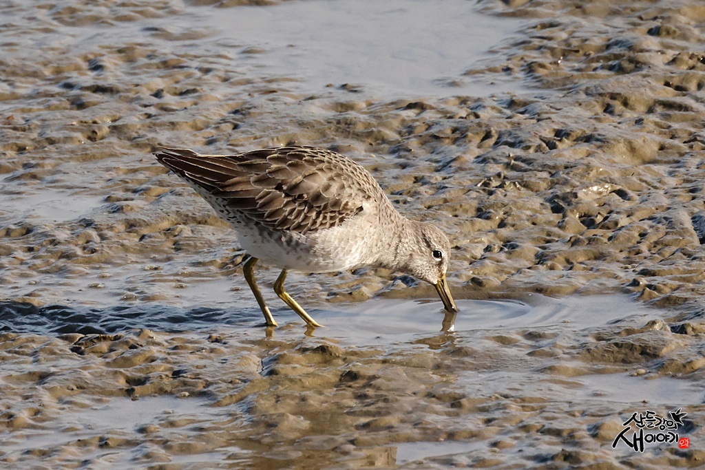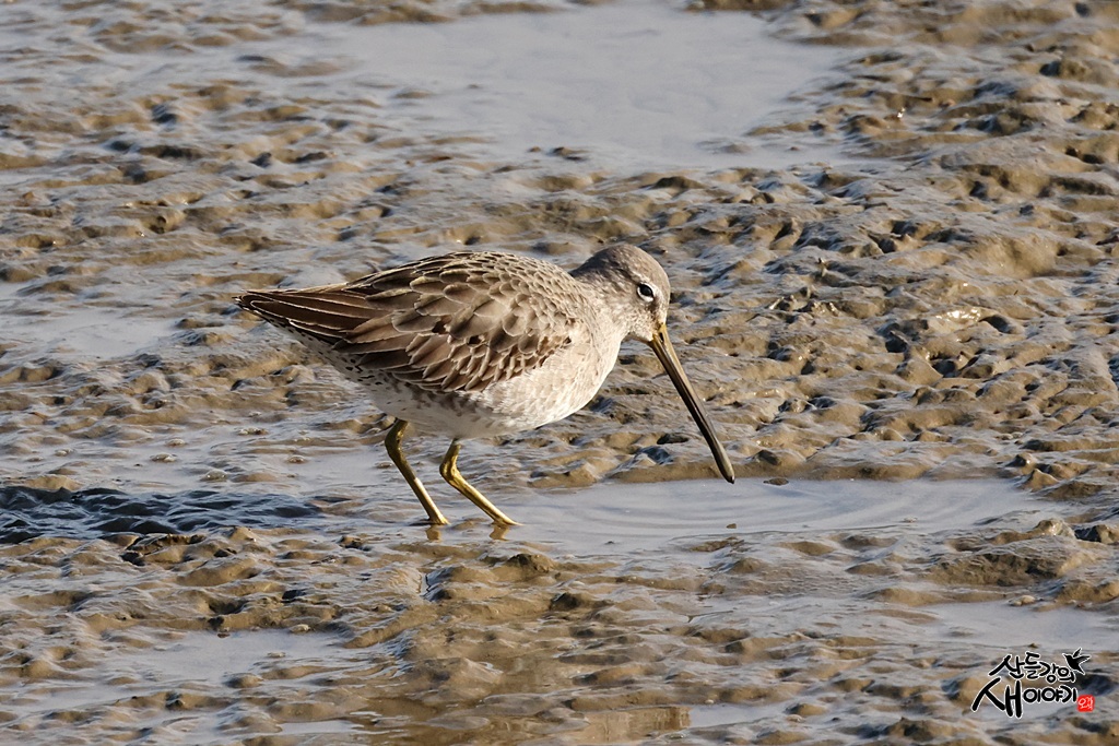 충청남도 서천군에 있는 서해안 바닷가의 갯벌을 탐조하던 중 긴부리도요 1마리를 관찰하였습니다.