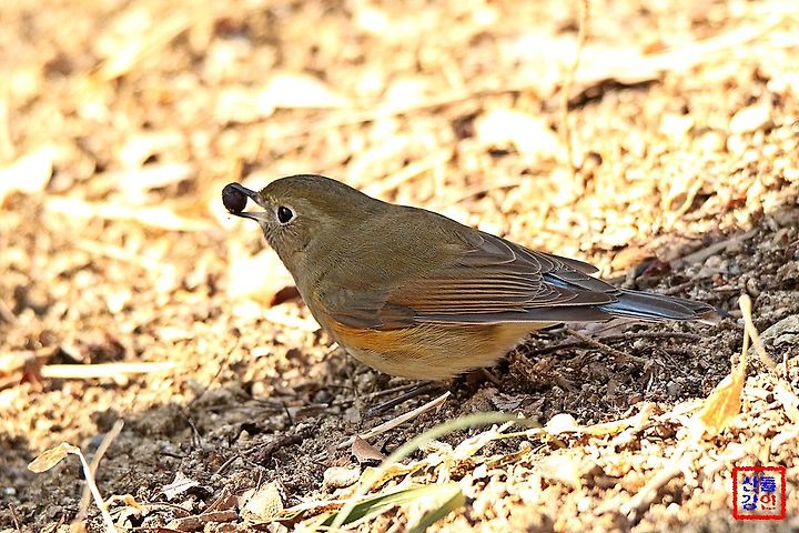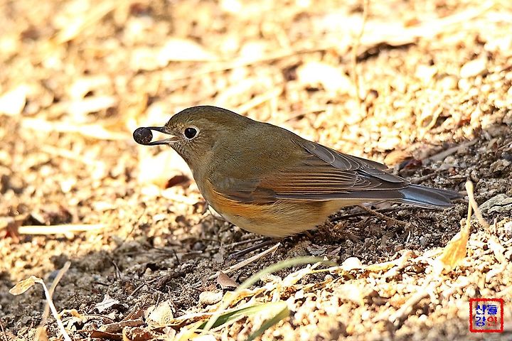 유리딱새 암컷 한마리가 나무 열매를 줍고 즐거워하고 있습니다. 올 겨울은 유난히 추워 힘든가 보네요.