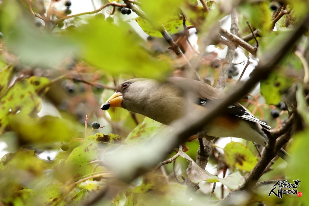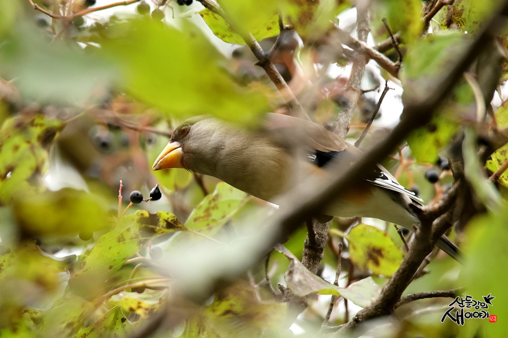 대구광역시 달서구 대곡동에 있는 대구수목원을 탐조하던 중 만난 밀화부리의 먹이활동 장면입니다.